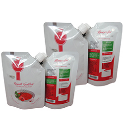 全自動高速番茄醬給袋式包裝機具有袋寬自動調(diào)整、機械式傳動、自動潤滑系統(tǒng)、實用性能好,使用范圍廣等特點,包裝袋材料有OPP、PE、PVC、OPP/CPP、PT/PE、KOP/CPP